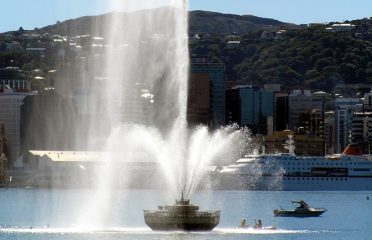 The Carter Fountain is a distinctive feature 150 metres out in Wellington Harbour from Oriental Bay.